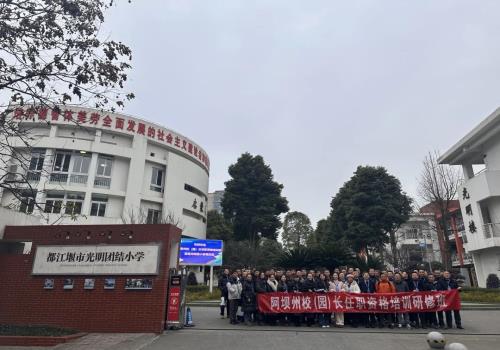 访学实践环节中,学员分赴都江堰市灌州小学、实验中学、机关幼儿园等10余所优质学校(幼儿园),实地观摩校园文化建设、德育工作开展、大课间活动组织及特色课程实施情况,与受访学校管理团队深度交流新课程背景下的教育教学管理经验,实现了"实地取经、学以致用"的培训目标。